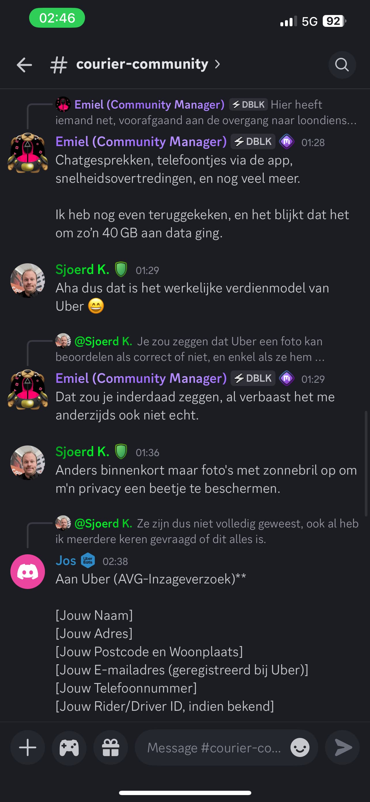 Iemand heeft zijn data opgegevraagd (via AVG) als bezorger bij UberEATS. Het bleek te gaan om 40 GB aan gegevens.