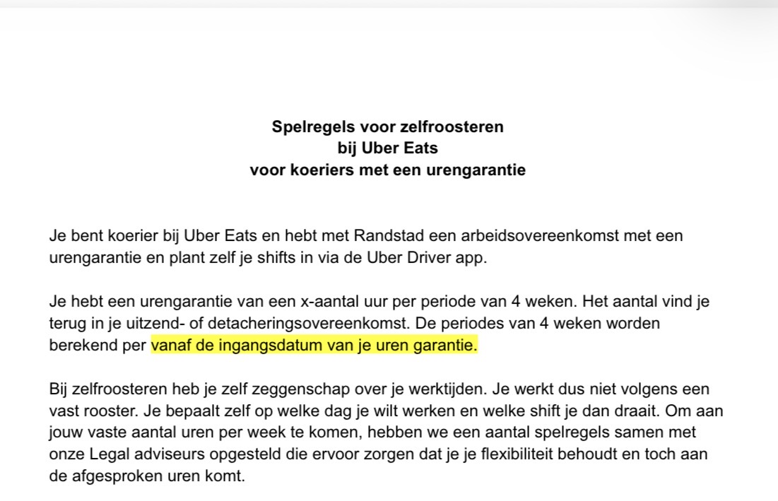 Basically what it comes down to is that you get a guaranteed amount of hours of work per month and they try to get something that suits you, if you cant find ubereats shifts for some reason. They also consider what kind of work you want to do (delivering meals and food in my case on a bike in rotterdam🚲).